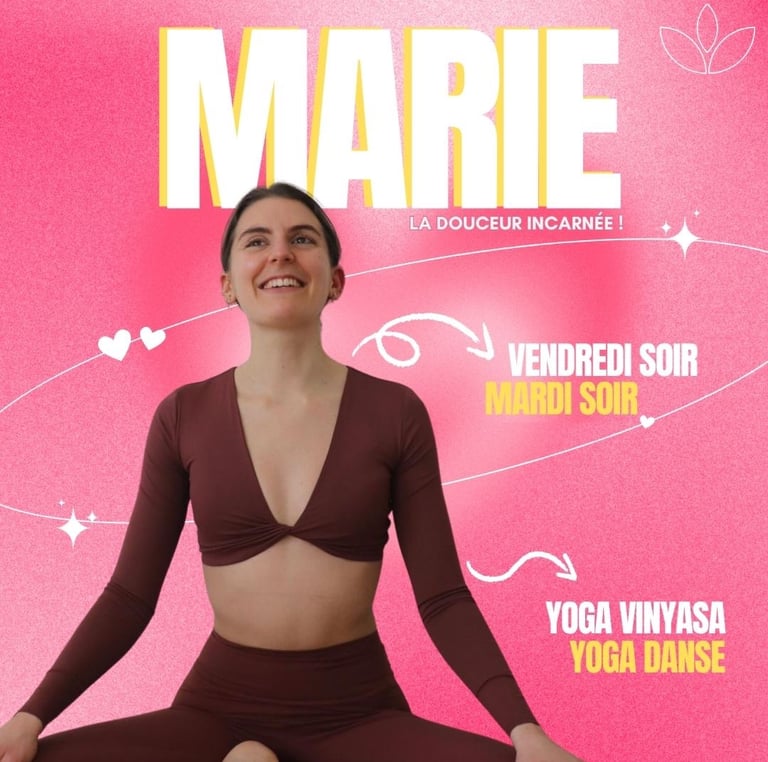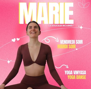 Prof de yoga et de yoga danse, Marie t’invite à ralentir, respirer, écouter ton corps sans jugement et avec amour et délicatesse.