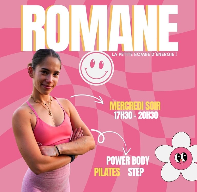 Spécialiste Pilates & Step, Romane est notre rayon de soleil musclée. Toujours souriante, ultra dynamique et pleine de bonne humeur, elle transforme chaque séance en un vrai moment de plaisir (oui, même quand ça brûle un peu 🥵).